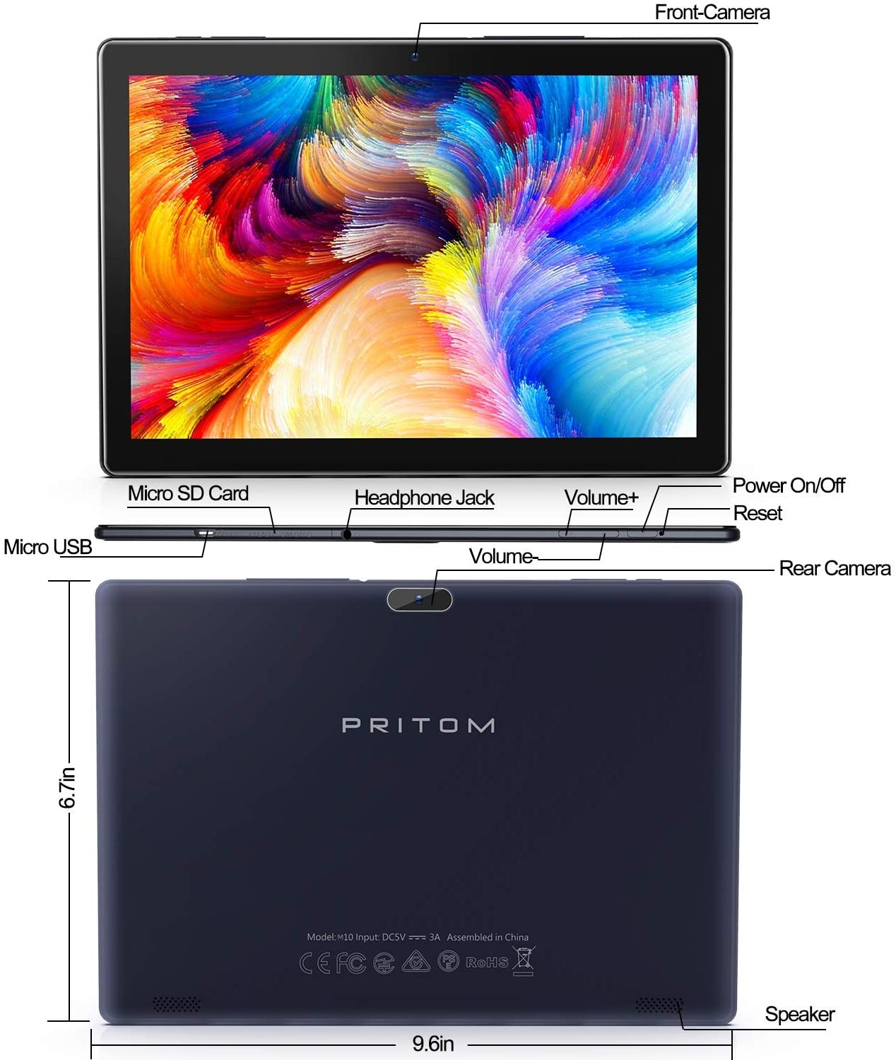 • High Performance Android Table -Pritom Tronpad tablet comes with the latest Android 10.0 , The powerful and energy-saving 32 bit Quad-core processor 1. 5GHz, 2GB RAM,enables quicker app launch, smoother videos and better overall performance. In addition, it includes a micro SD card slot (can be added a 128 GB SD card Max, NOT included), no more worrying about storage space, making it easy to store videos etc.