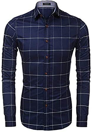 COOFANDY Men's Fashion Long Sleeve Plaid Button Down Shirt Casual Dress Shirt