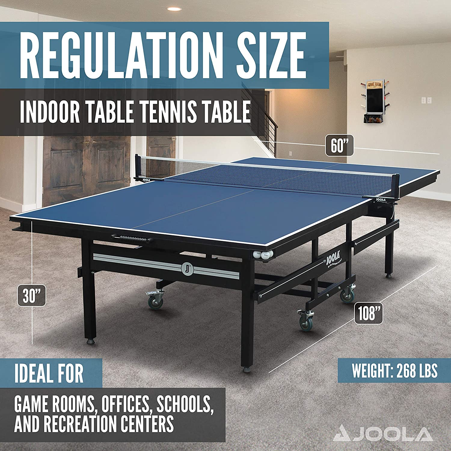 JOOLA Signature Pro Tournament-Quality Indoor Table Tennis Table w/ Professional Ping Pong Net and Post Set - 25mm Ping Pong Table w/ Playback Mode - One Piece Undercarriage - Corner Ball Holders