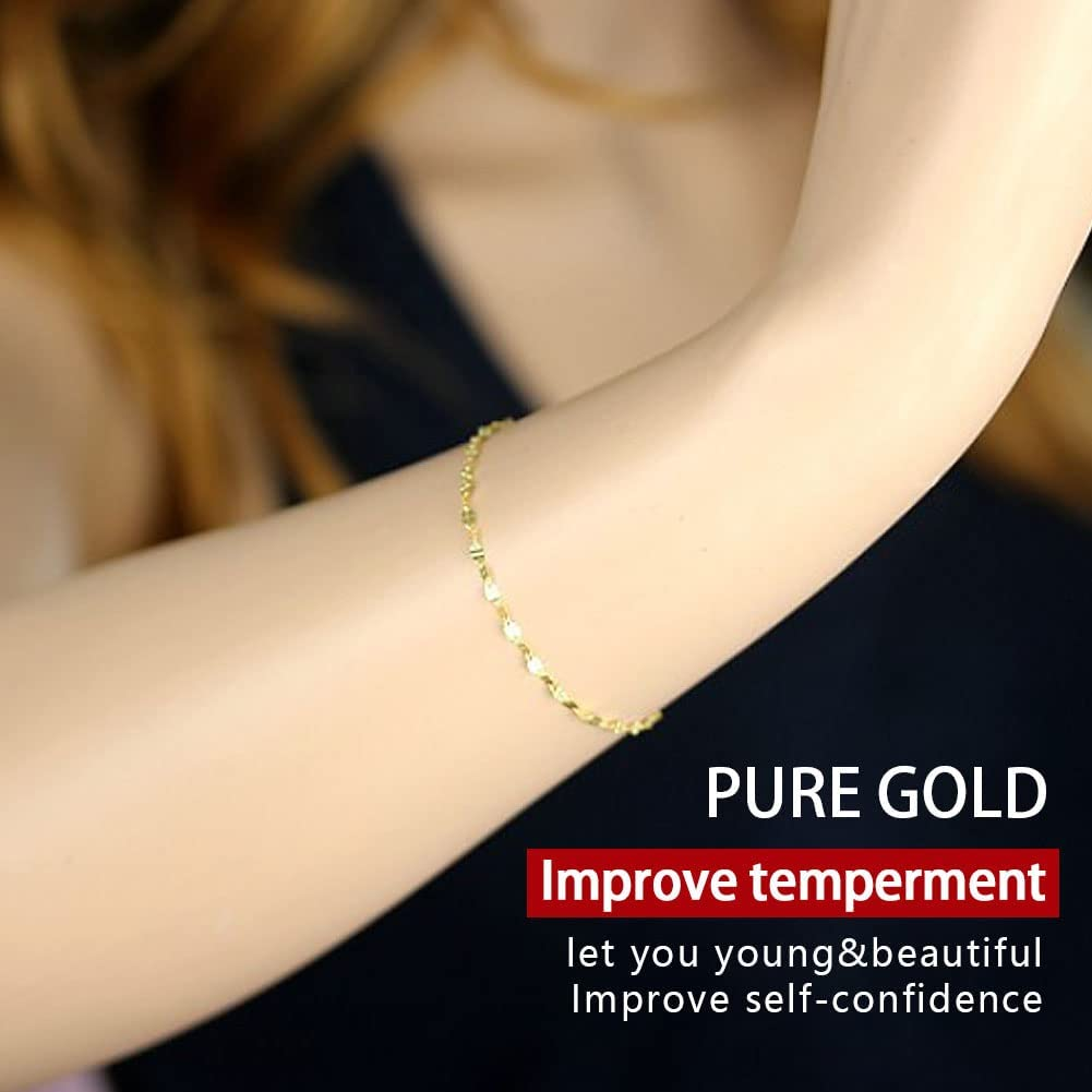 【REAL GOLD】The whole thin bracelet are real 18K gold, not just a covering; All parts are solid Au750 gold,not just plated; After testing by the testing center, there is a pure gold testing certificate. Wearing of any physique will not be allergic.