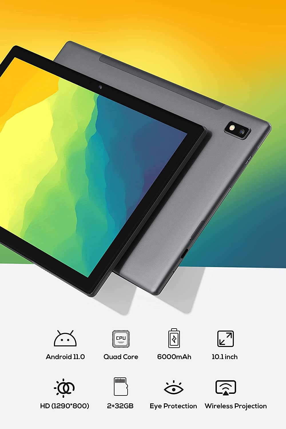 • 【Dynamic Capabilities】Equipped with 2G DDR internal memory and powerful Quad CORE. Play your favorite games, watch 4K live streaming, online meetings & classes, smooth multi-task experience. What's more, together with the 6000mAh battery, your entertainment will last up to 6-8 hours, standby up to two weekends.